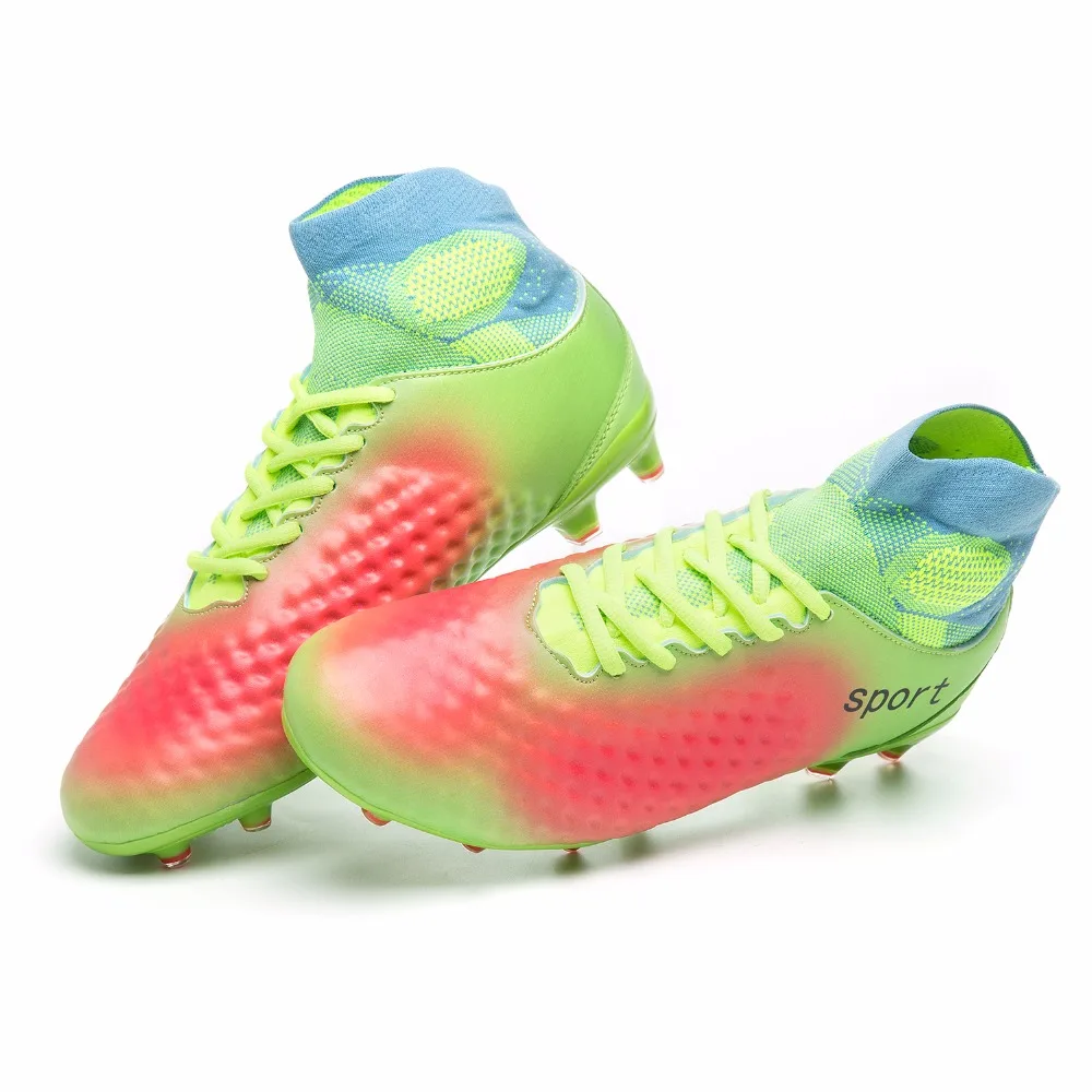 Получить для дешевая цена Футбольные бутсы мужские высокие лодыжки великолепные футбольные туфли AG профессиональный открытый детский тренировочный носок бутсы. Стоимость Низкий и варианты из разнообразия магазинов в мире. описание продукт