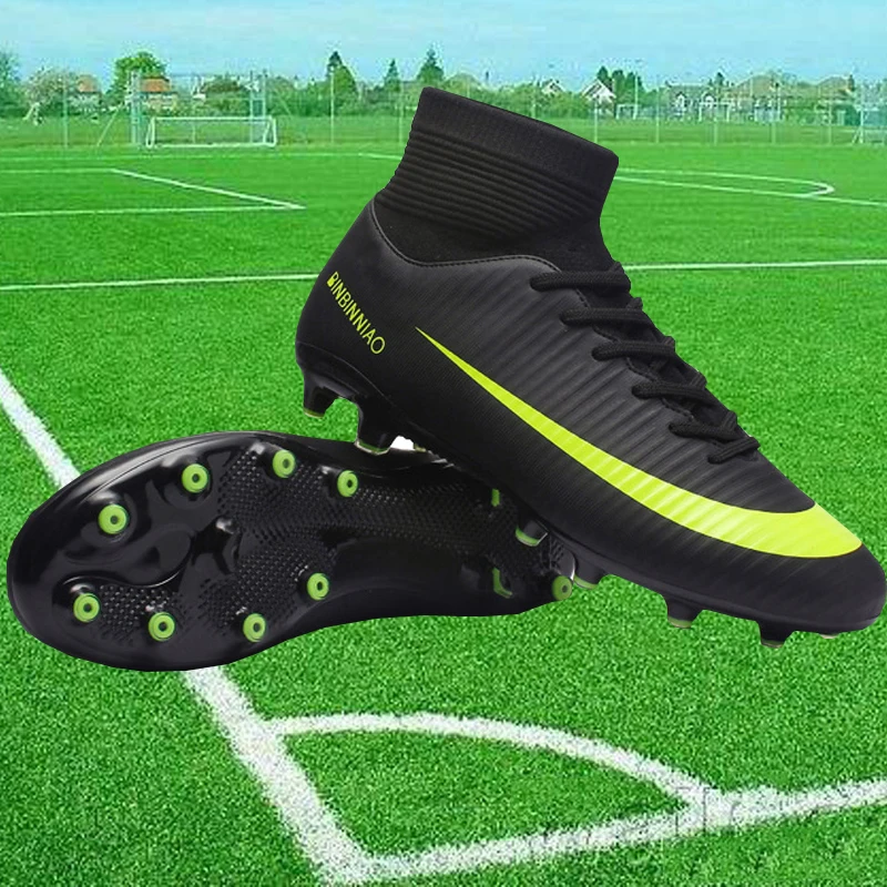 Ищите самая низкая цена Chuteira futebol высокие ботильоны спортивные Футбол обувь для мужчин и женщин модели FG шипованные ботинки футбольные бутсы, уличные Футбол обувь. Стоимость Низкий и варианты из разнообразия магазинов в мире. описание товара